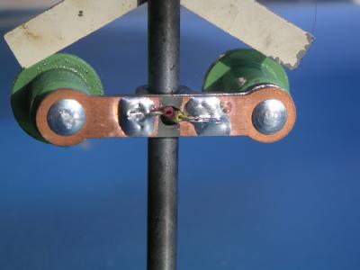 The control board is designed to work with a standard AC powered American Flyer train layout. For more realistic effect, the 759 and 761 Danger lights need to be modified as shown above to allow each lamp to be controlled individually.